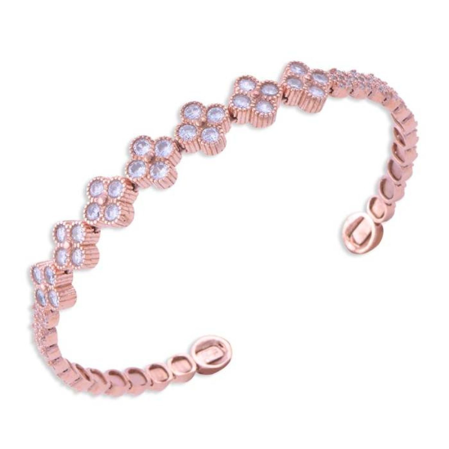 925 Ayar Gümüş Kelepçeli Kadın Bileklik Yonca Model 10.7 gr Rose Gold