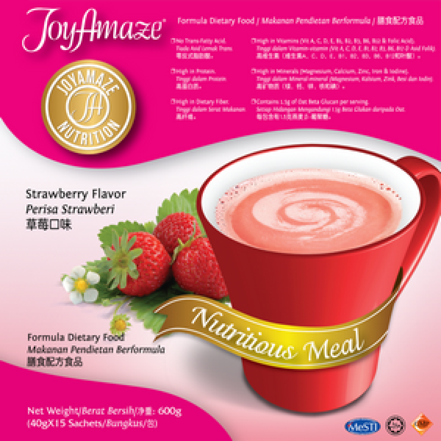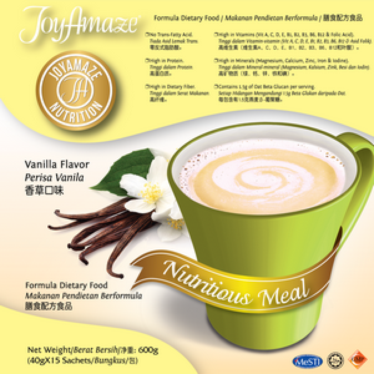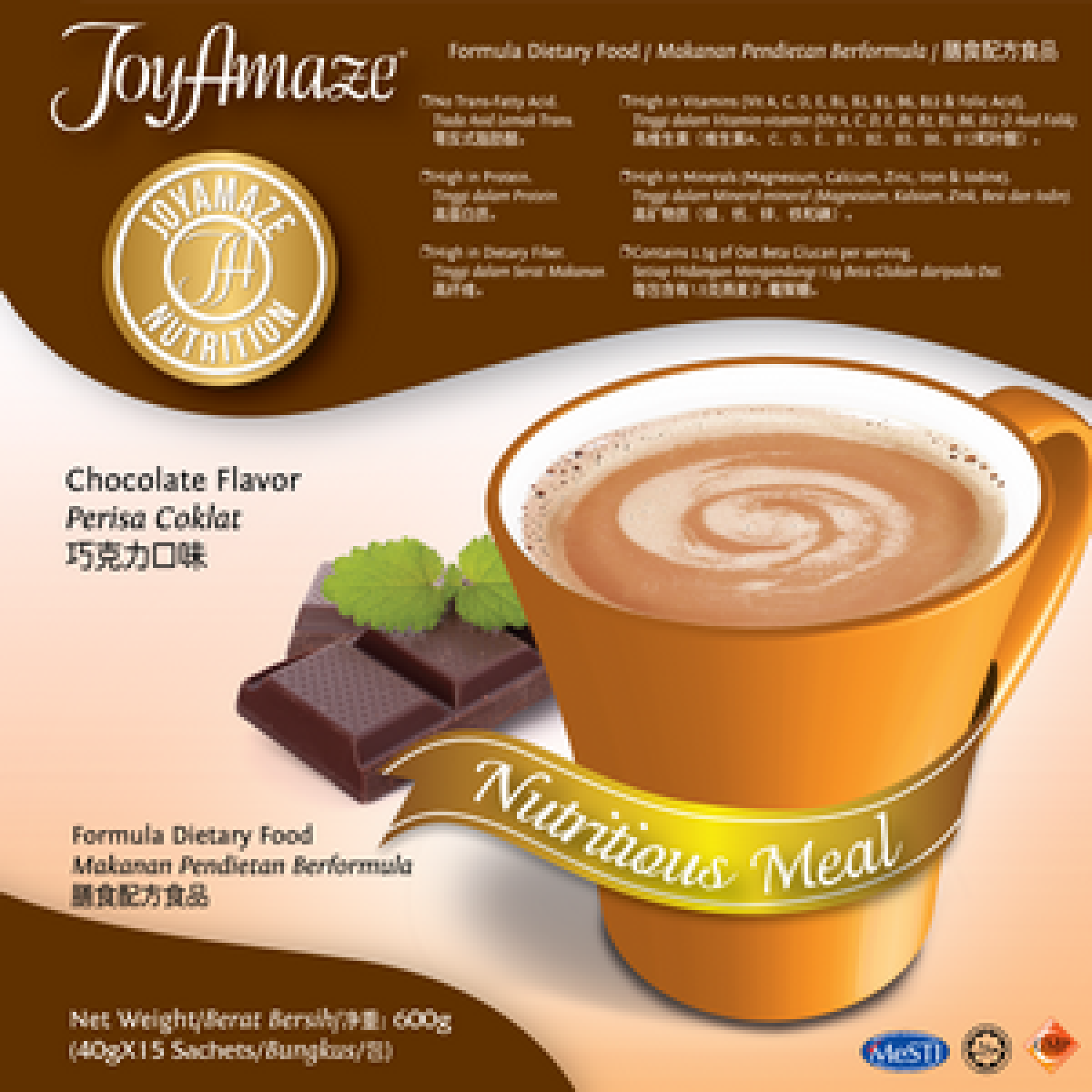 Directions:- Pour 300ml of warm water. Add a sachet of JoyAmaze® Nutritious Meal. Stir or shake well.