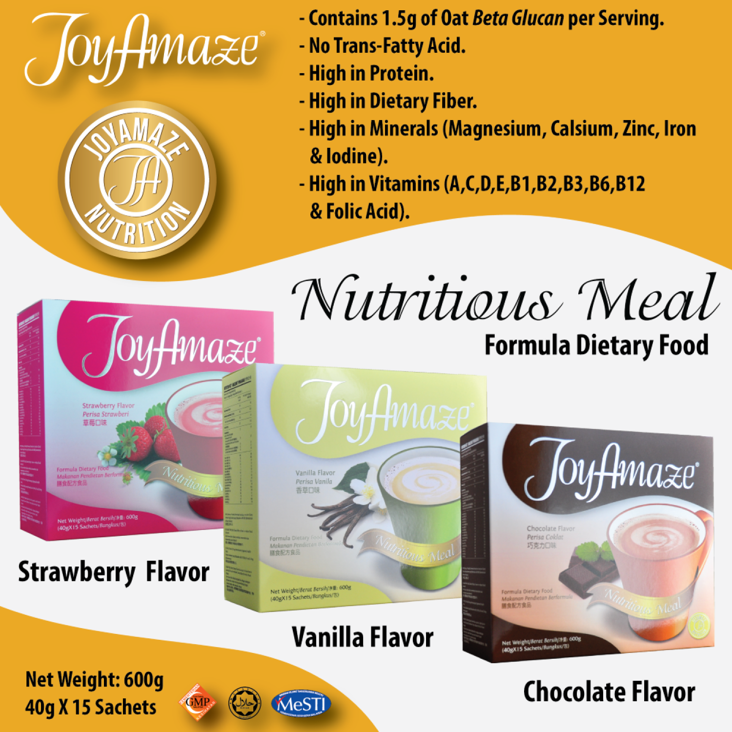 JoyAmaze® Nutritious Meal is invented based on proven scientific studies on successful weight loss from high protein, high fiber meal plan and it’s formulated with proven cholesterol-lowering ingredient.