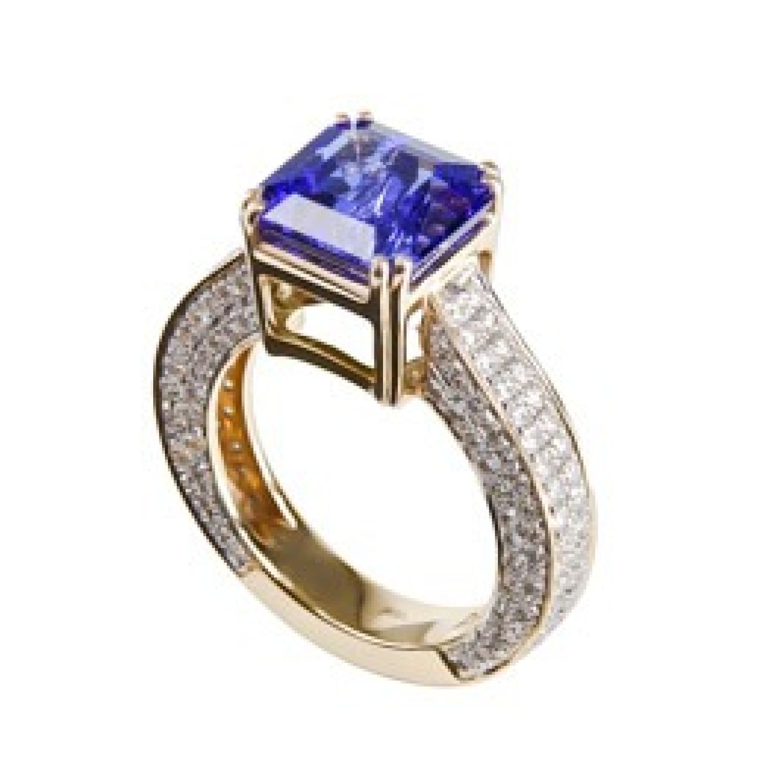 RING 18K WHITE GOLD W/DIAMOND & TANZANITE