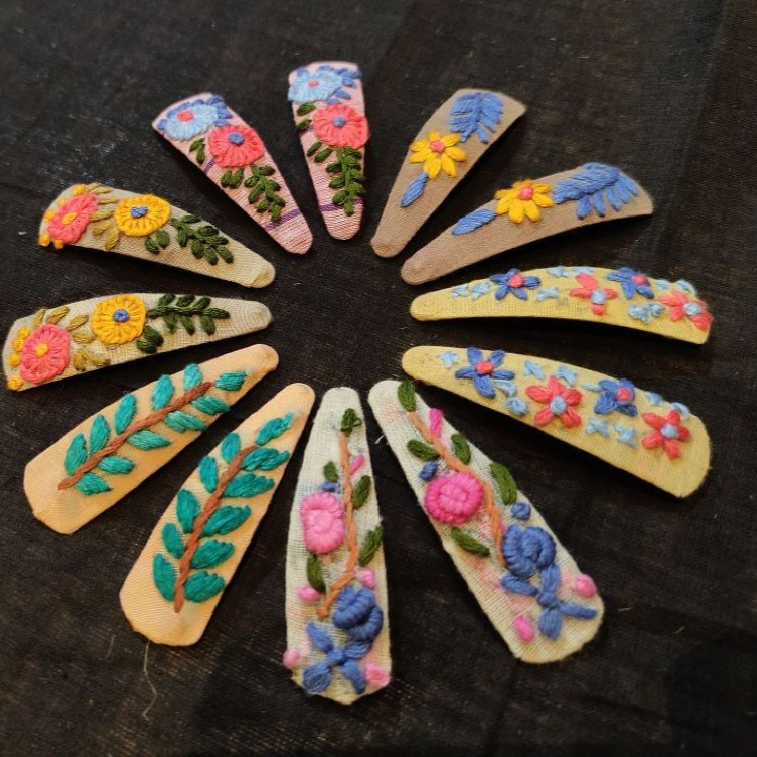 Hand embroidered hair clips